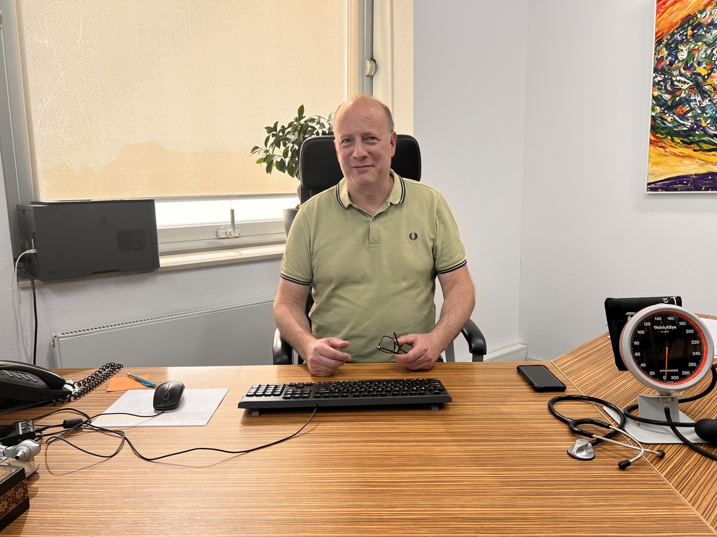 Na zijn opleiding begon Bas als waarnemer, nieuwsgierig naar hoe het er in verschillende praktijken aan toe ging. Al snel werd duidelijk dat het praktijkhouderschap hem meer bood: autonomie, binding met patiënten én de ruimte om echt iets op te bouwen.
